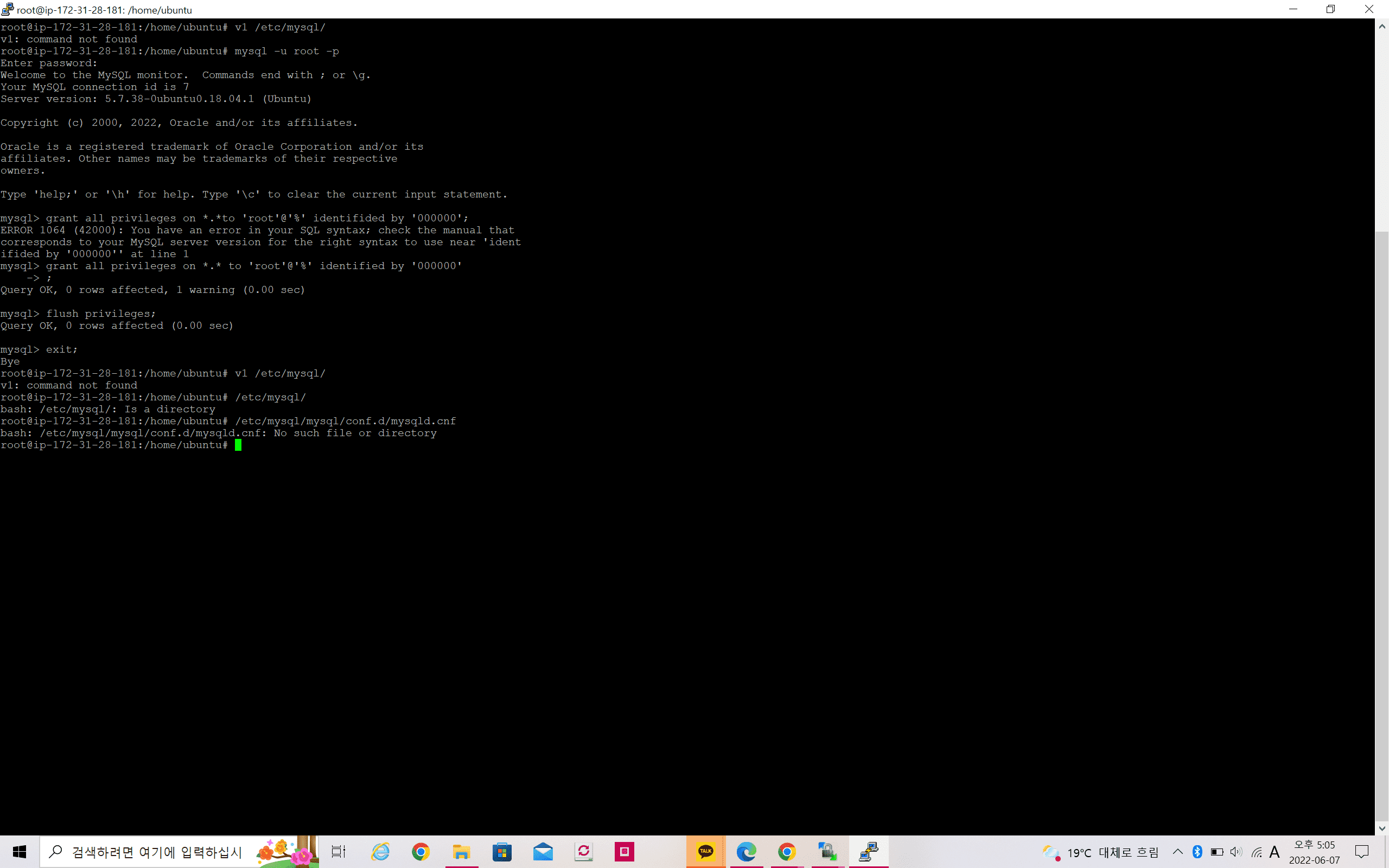 -v1 /etc/mysql/ 하면 오류가뜹니다