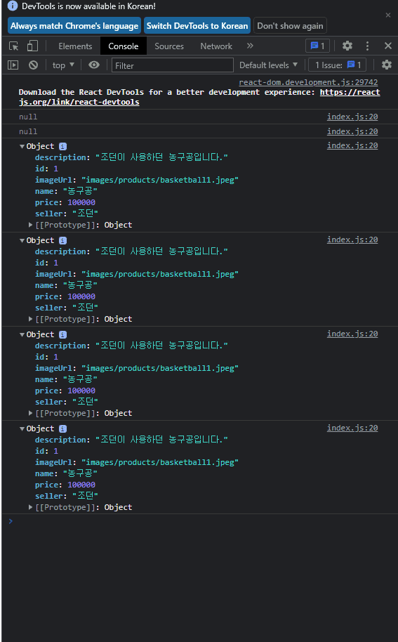 똑같이 따라 했는데 콘솔로그창을 보면 이렇게 여러개 찍혀있습니다! 혹시 문제가 있는걸까요?