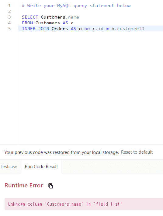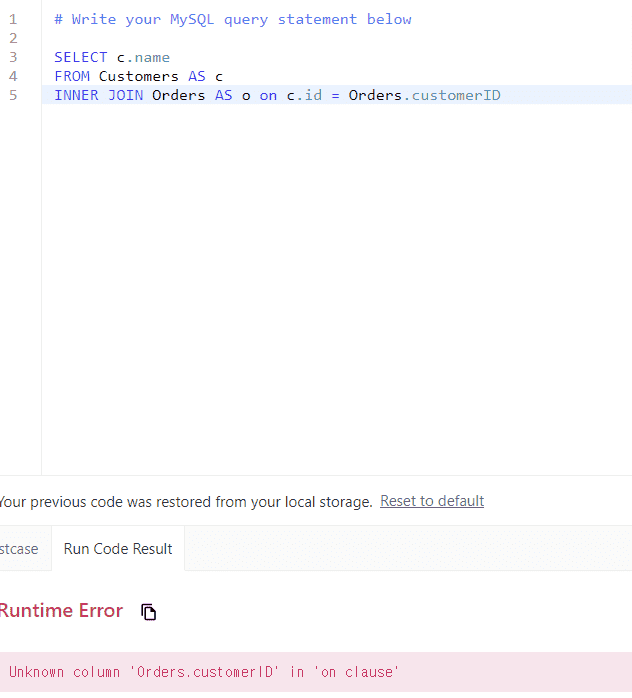 쿼리문 첨부해서 다시 질문드립니다!별칭을 지정 후에 SELECT, WHERE 절에 별칭을 사용하지 않고 원래 테이블 이름을 쓰니까 오류가 났습니다.