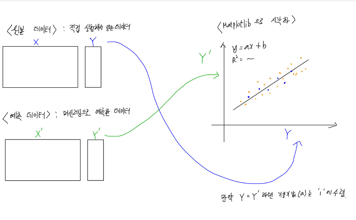 위의 그래프는 실제값과 예측값이 완전히 일치하면 기울기가 1인 직선상에 표기가 되고, 실제값과 예측값이 다르면 다를수록 직선에서 멀어진 위치 벡터 값을 갖는 형태로 표현된 그래프인가 생각을 다시하게 됐었네요 ..