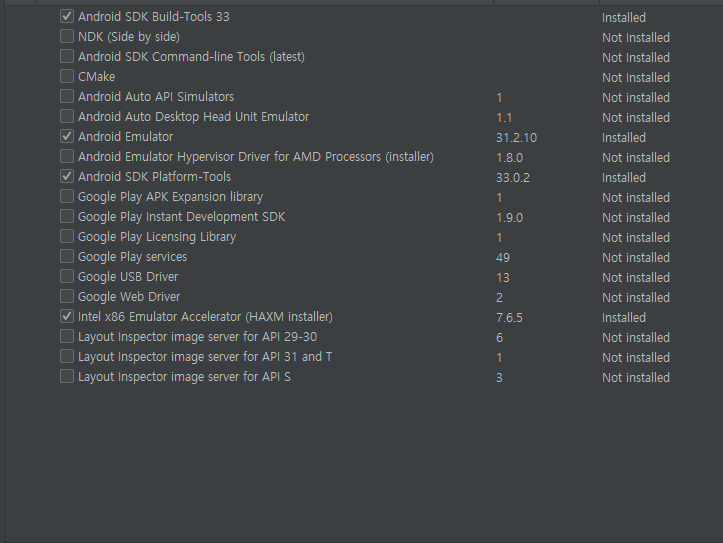 <sdk tools 설치목록>