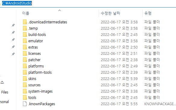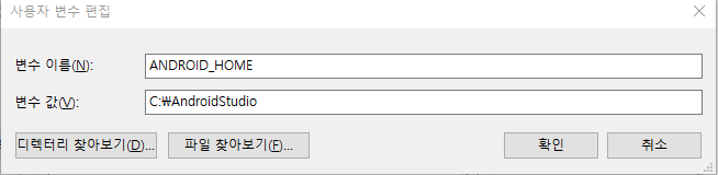 ANDROID_SDK_ROOT에 C:\AndroidStudio 등록하시고