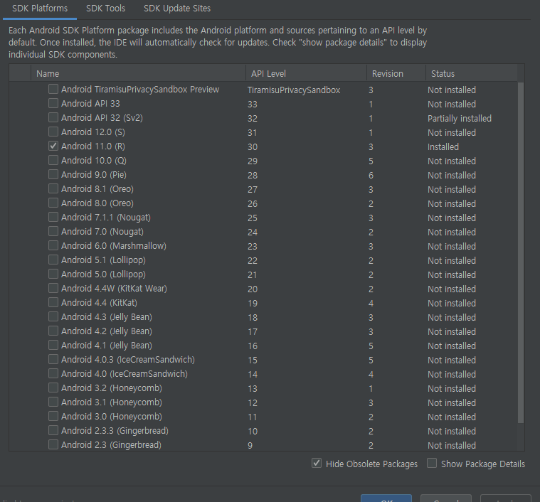 <sdk 플랫폼 설치목록>