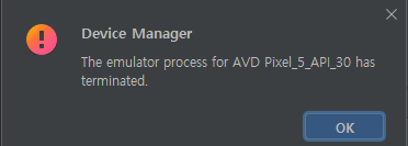 android studio에서 device실행시 해당 오류가 뜹니다..