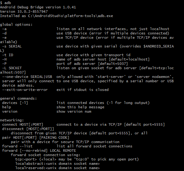 <git bash에서 adb 실행 > 잘 동작함>
