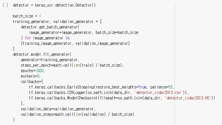 실습 과정에서 fit_generator를 호출하여 학습을 진행하는 코드