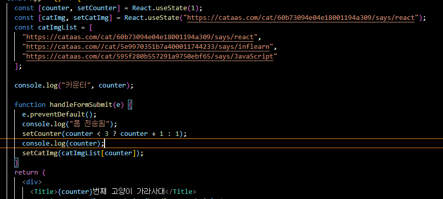 아래 첨부해드린 코드에서 console.log(counter); 한 부분에 찍혀있는 counter 값은 변경되기 전의 값이 찍히더라고요.