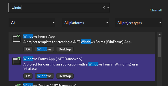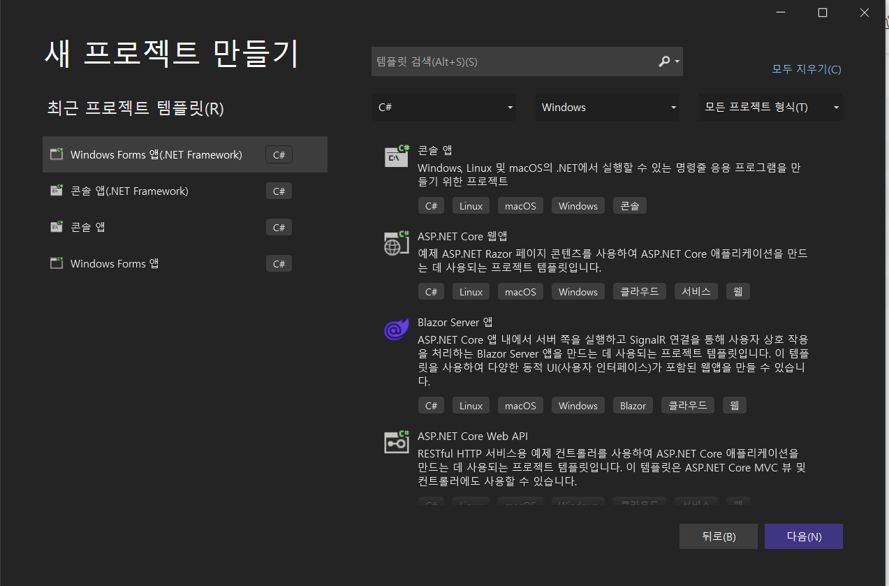 1.아래와 같이 프로젝트생성시 .NetFramework를 선택해주세요.