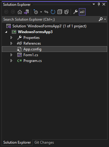 제가 .net 프레임 워크를 3.5로 생성 하고 있었는데 4.8로 변경 했더니 정상적으로 app.config가 보입니다.