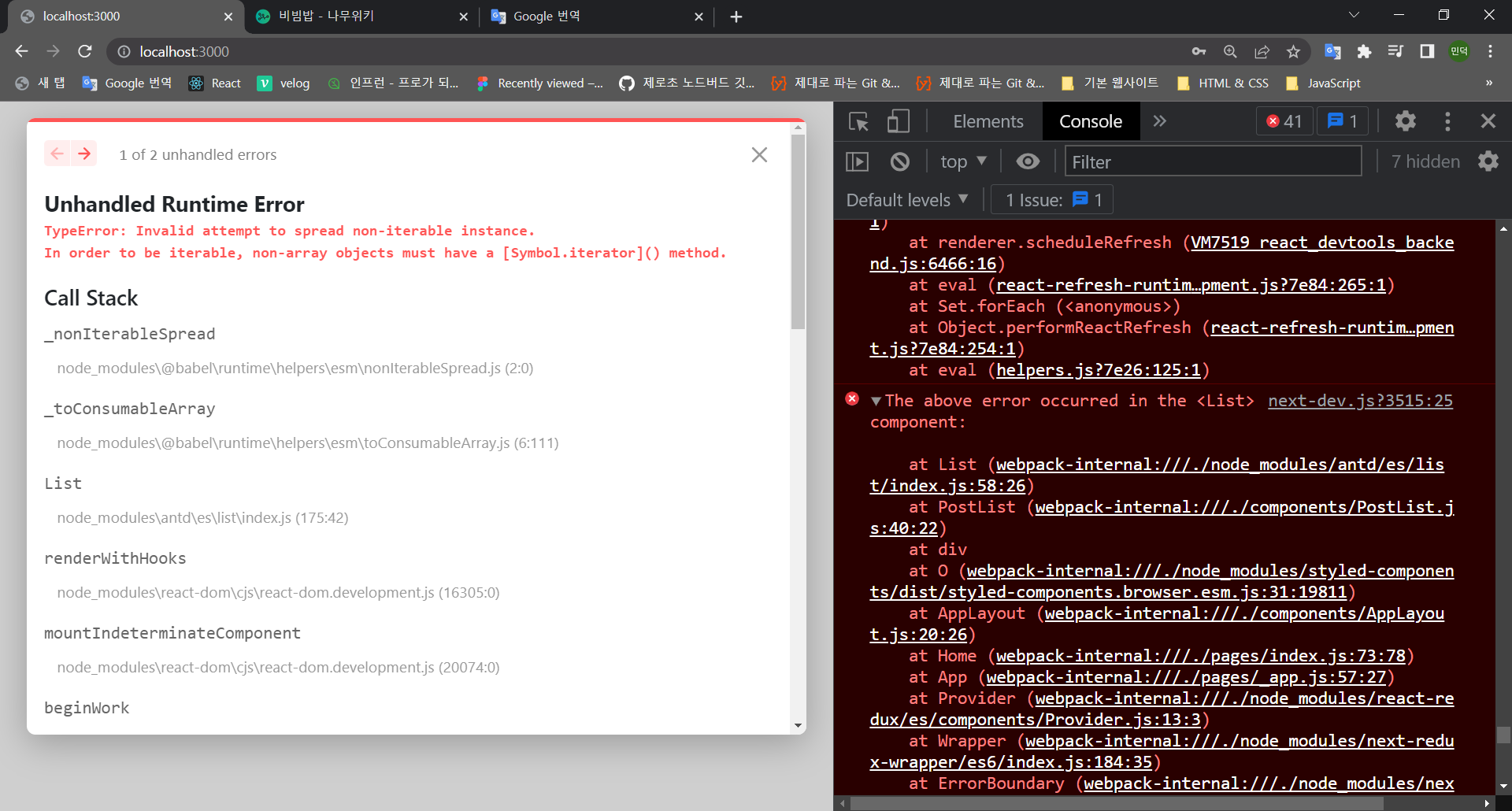근데 아래와 같이 post reducer의 데이터를 가져와서 페이지에 출력하려고 하면 아래와 같이 오류가 발생하는데 혹시 이유를 알 수 있을까요?