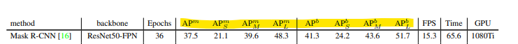 b는 bounding box를 기준으로한 AP, m은 mask를 기준으로 한 AP같군요.