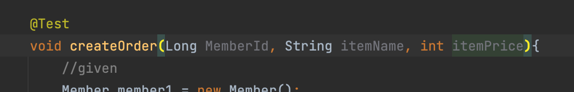 해당 수업 실습중에 실수로 테스트코드에 피라미터를 넣게되었습니다.