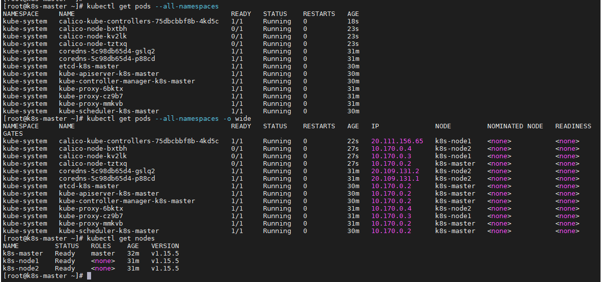 kubectl get nodes 명령을 통해 모든 node들이 ready 상태인지도 확인해 보시면 좋고요.