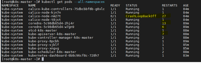 다시 했더니 같은 문제가 생기네요. calico node가 0/1이고 계속 restarts되요..