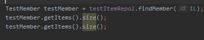 testMember.getItems().size()에서 member id를 가지고 item들을 찾는 쿼리 하나 나갔고,