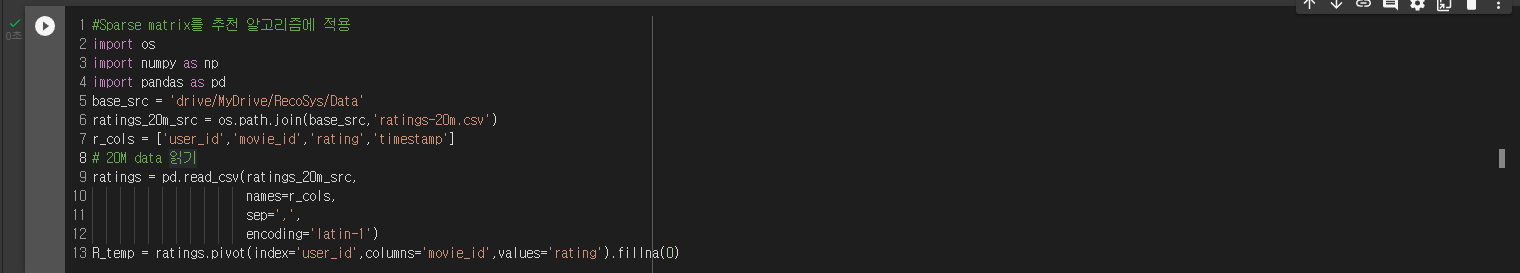 sparse matrix를 추천 알고리즘에 적용하기에서