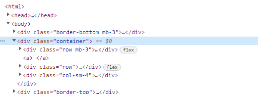 index.html 에서는 row 태그 안에 col-sm-8 과 col-sm-4 태그를 넣어서 배치했는데, 실제 웹에서 보면 col-sm-4 코드가 바깥으로 나온 것으로 보여집니다.