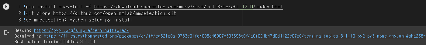 !pip intsall mmcv-full 하기전에 위와 같이 torch 버전을 출력하면 버전이 나옵니다.