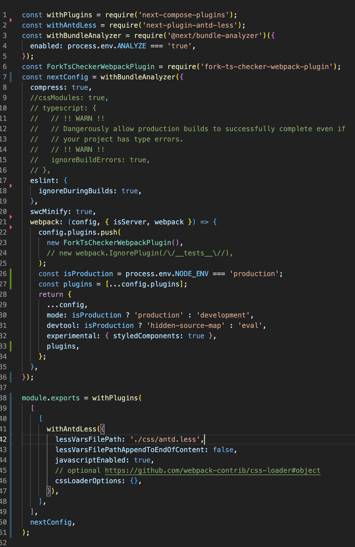 module.exports = withPlugins([[withAntdLess...], [withBundleAnalyzer...]], nextConfig)