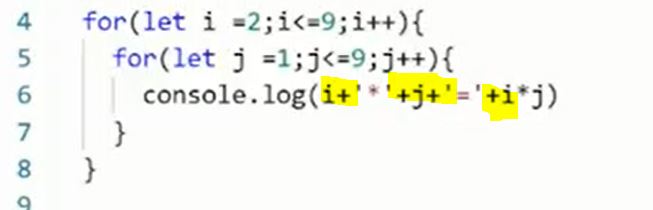 앗! console.log ( i '*' j '=' i*j) 이 문법이 된다고요/