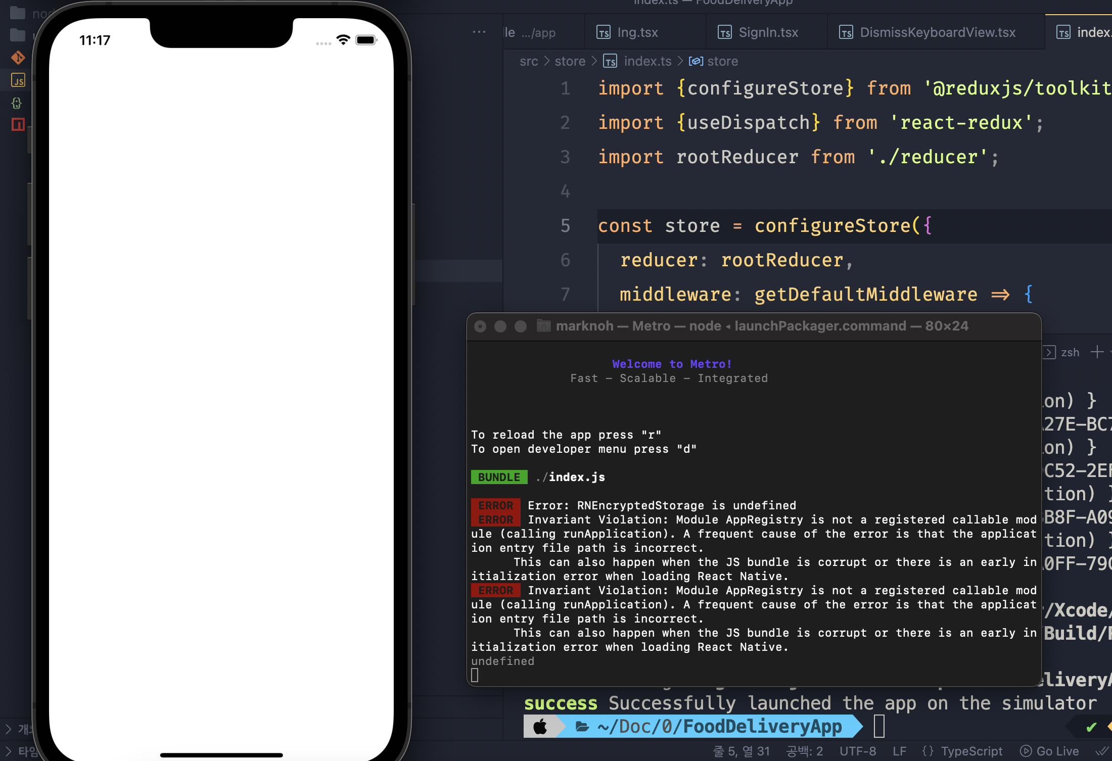 RNEncryptedStorage 오류 관련 질문 드립니다.