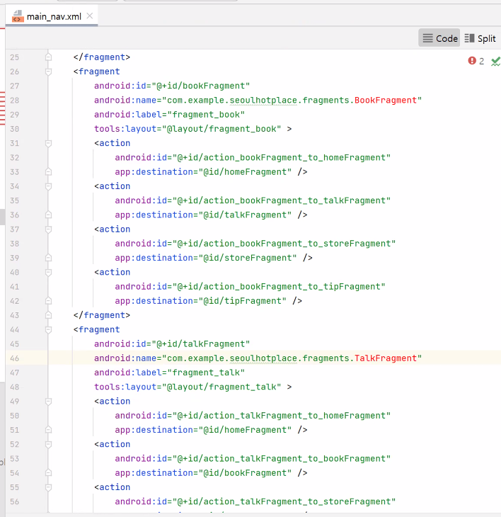 main_nav 에서 fragment를 삭제하시고 다시 시도하시면 제대로 된 위치로