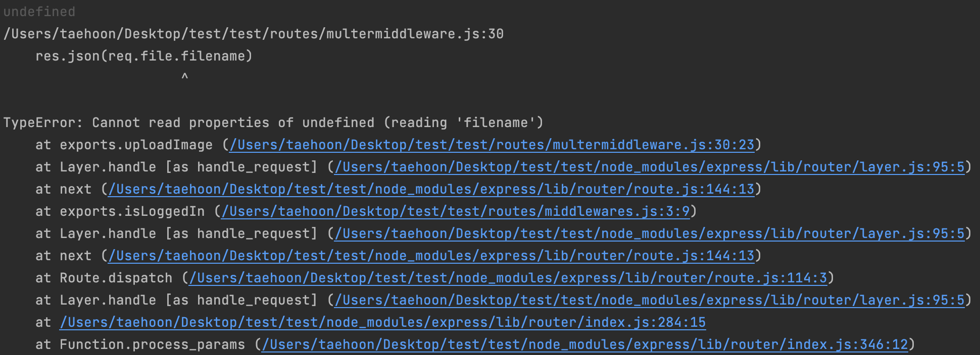 와 같은 에러가 떴는데 이미지 업로드 부분을 따로 떼서 모듈화 하여 다른 router에 넣고 싶은데 어떻게 해야하나요?