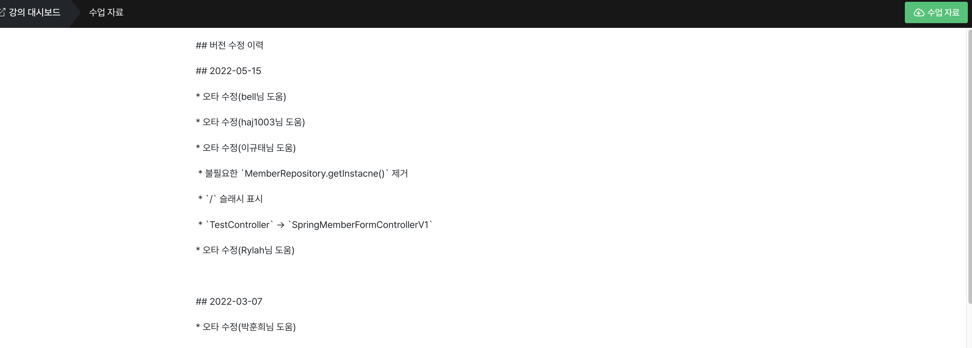 1. 강의 내용과 관련된 질문을 남겨주세요.