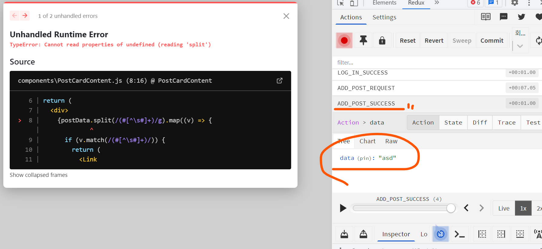 리덕스데브툴즈 보니까 게시글 성공시 (ADD_POST_SUCCESS) 데이터는 잘 들어가져 있습니다.
