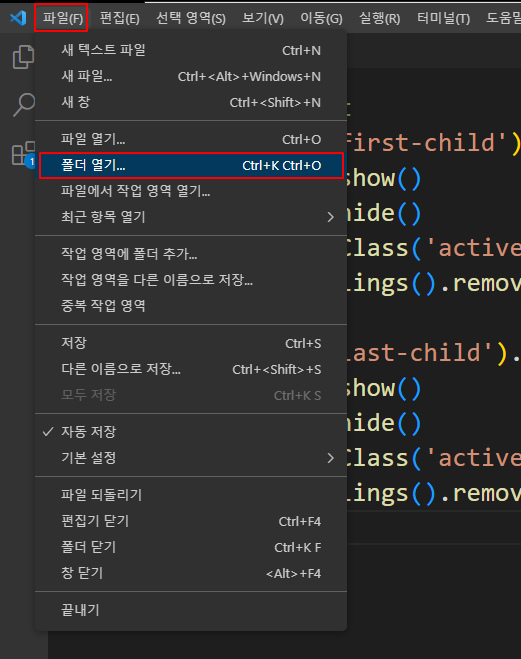 그리고 폴더 이름은 영문 폴더로 하면 Live Server 오류 나는 경우가 있습니다. 폴더는 영문으로 하세요.