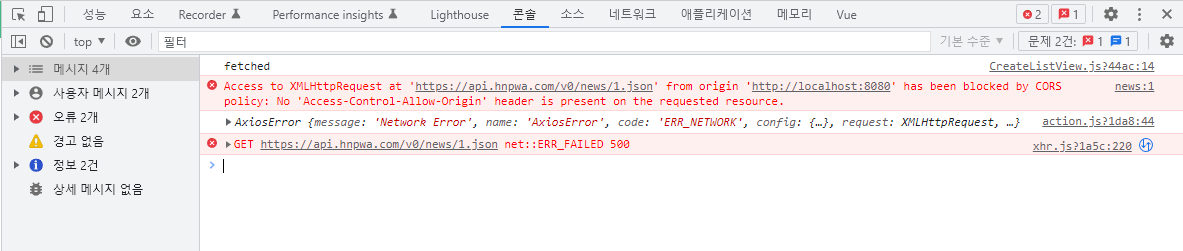 뷰뷰 콘솔에는 이런 메세지가 뜨구요..