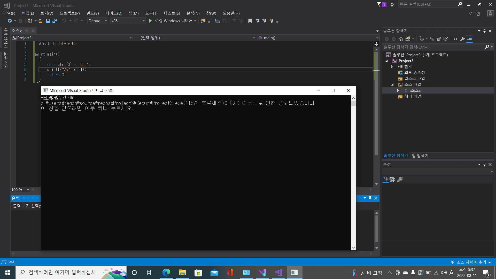애초에 [3]으로 하고 = "HEL" 하면 오류가 나야하는것이 아닌가요?