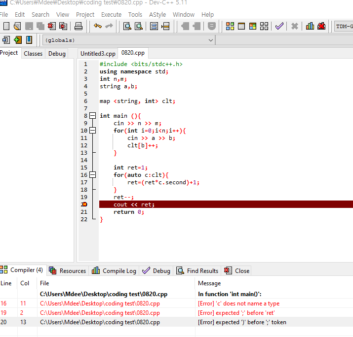 auto c : _map 으로 진행을 하였는데 'c' does not name a type 에러가 나타나는데 어떻게 해결해야할까요!!