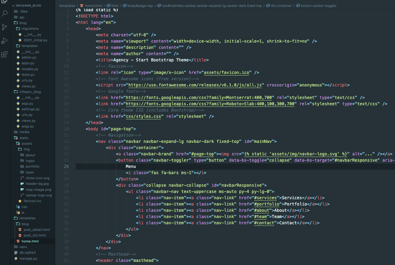 아래 에러는 templates 와는 무관하고, 24라인, src="{% static '~' %}" 와 관련된 사항입니다.