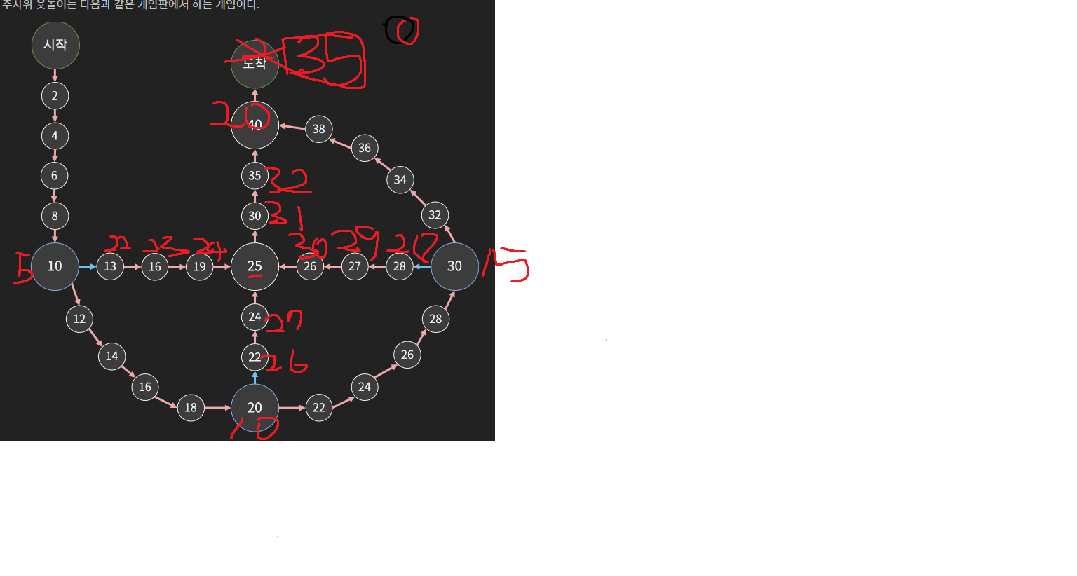3주차 개념강의 중 지옥의 '주사위 윷놀이'.