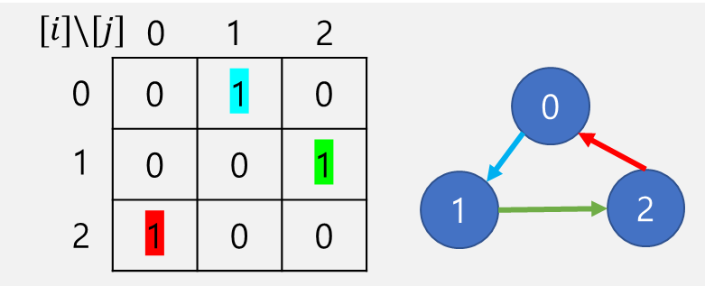 저 맵에서 만약i, j의 의미는 i로부터 j로 갈 수 있음을 나타낸다. 하면 인접행렬이지만