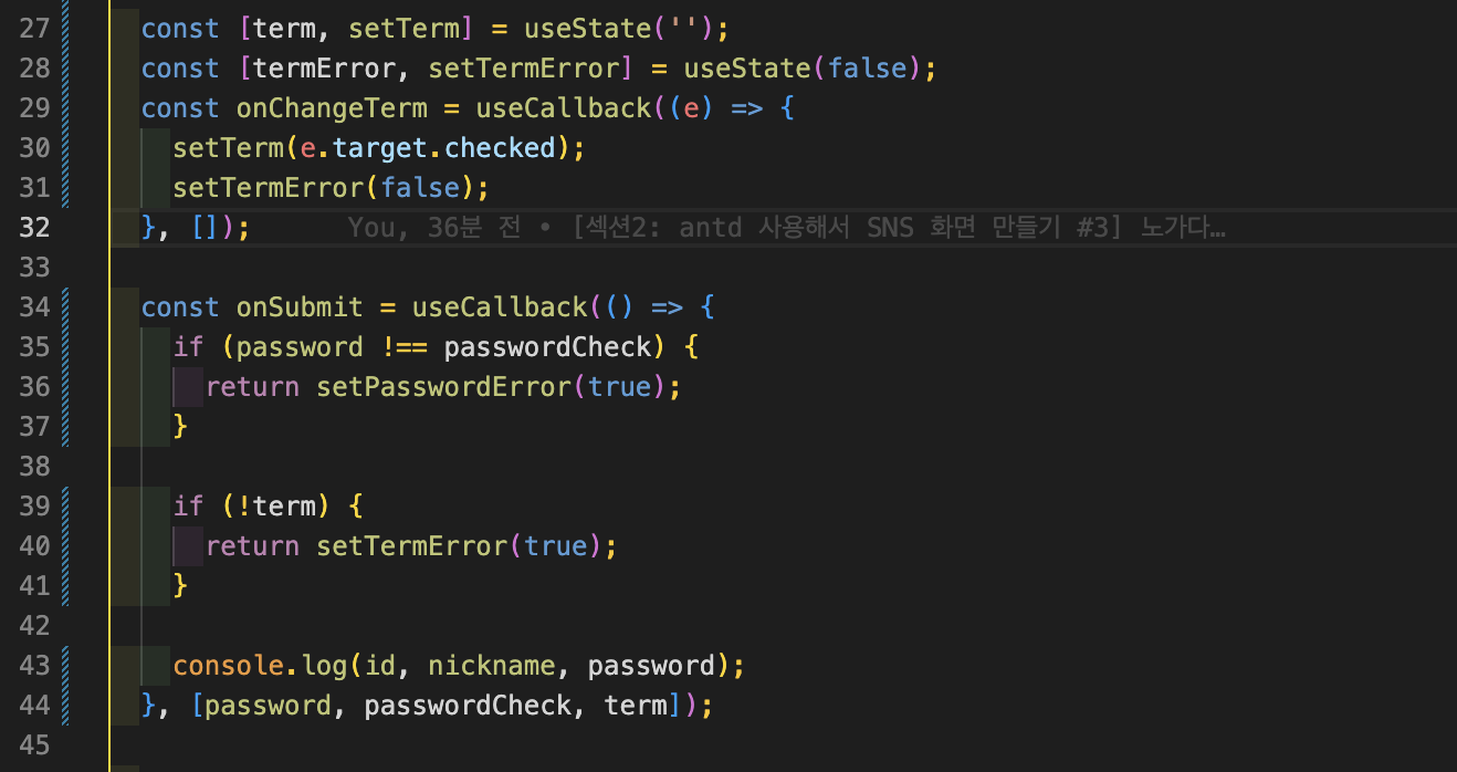 아뇨. 약관동의를 안 하고 서브밋해서 에러가 생겼다가 동의를 해서 정상으로 돌아올 때 에러가 있다고 표시한 걸 없애야 하니까요. 걍좌 코드 대부분은 실수가 아니라 의도나 이유가 있는 겁니다.