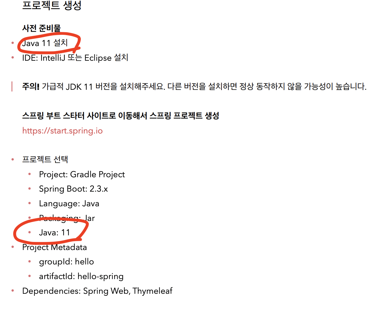 우선 강의와 강의 메뉴얼에서 자바버전 11 설치를 설명드렸으나,