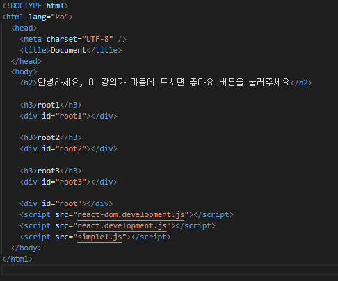 react.development.js 를 실행하기 전에 react-dom.development.js 를 먼저 실행하면 에러가 나서요아래 순서로 작성하시면 잘 동작할거에요