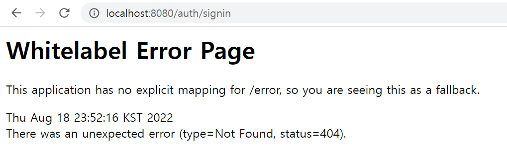/auth/signin 요청을 처리할 수 있는 컨트롤러 매핑이 있는지 확인해주세요.