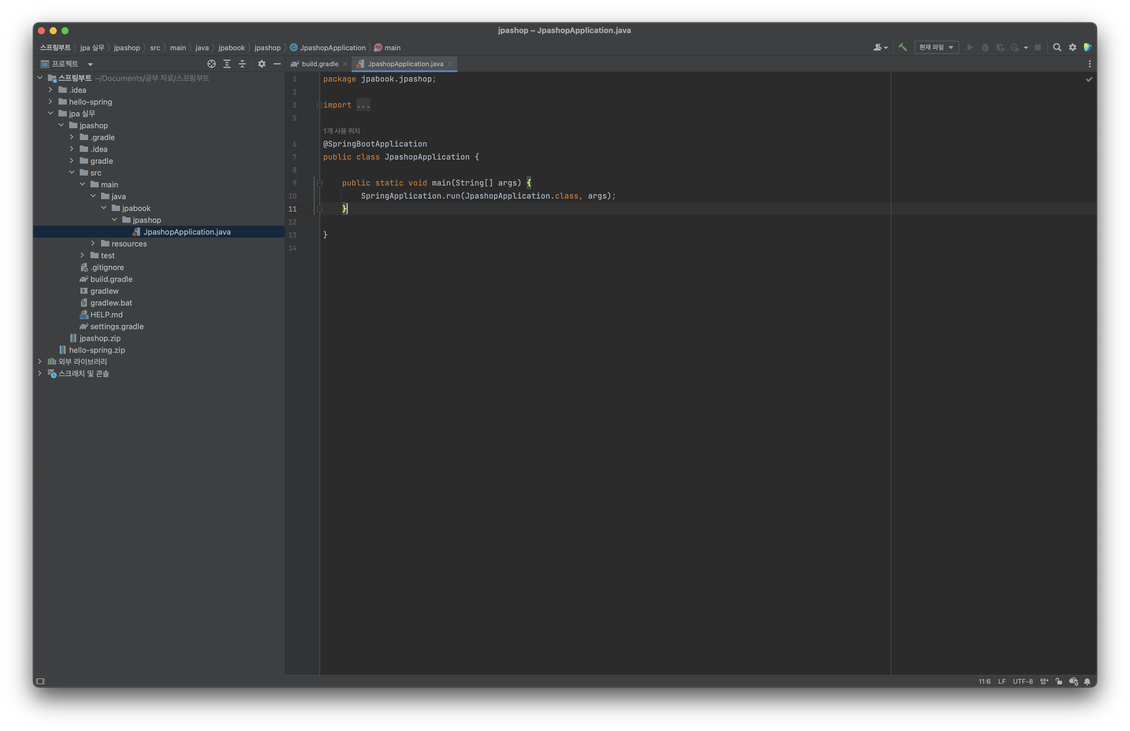 1. 프로젝트를 여실 때, build.gradle 파일을 선택하셔서 열어주세요.