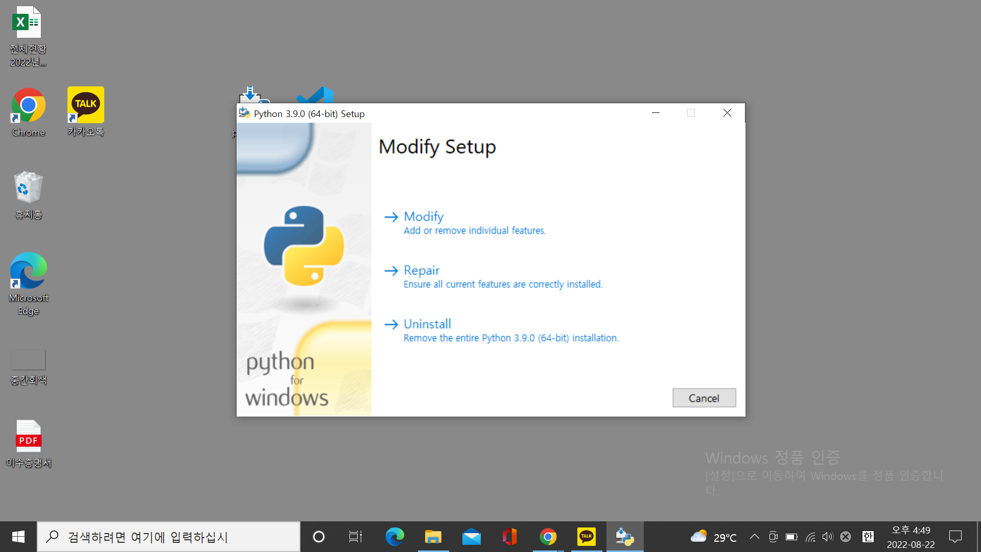 윈도우라면 제어판 가셔서 기존 파이썬을 찾아서 삭제하시고 다시 설치하시면