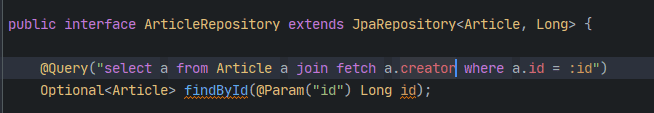 단건 글조회 호출쿼리를 실행했을때 처음 creator 부분은 fetch join이 정상적으로 되지만