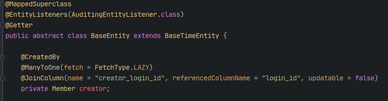 우선 Member 엔티티 코드를 보면 PK가 member_id입니다.