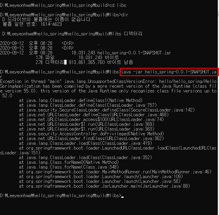 설치된 자바 버전이 11이 아닙니다^^