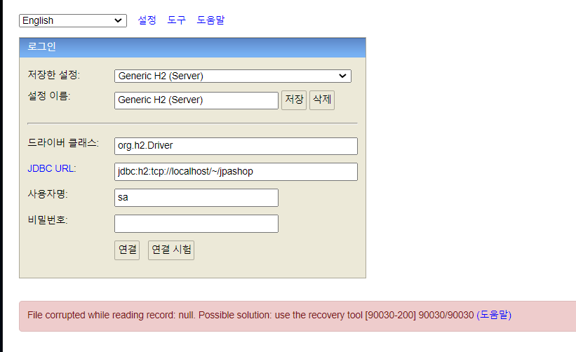 H2 DB 접속에러