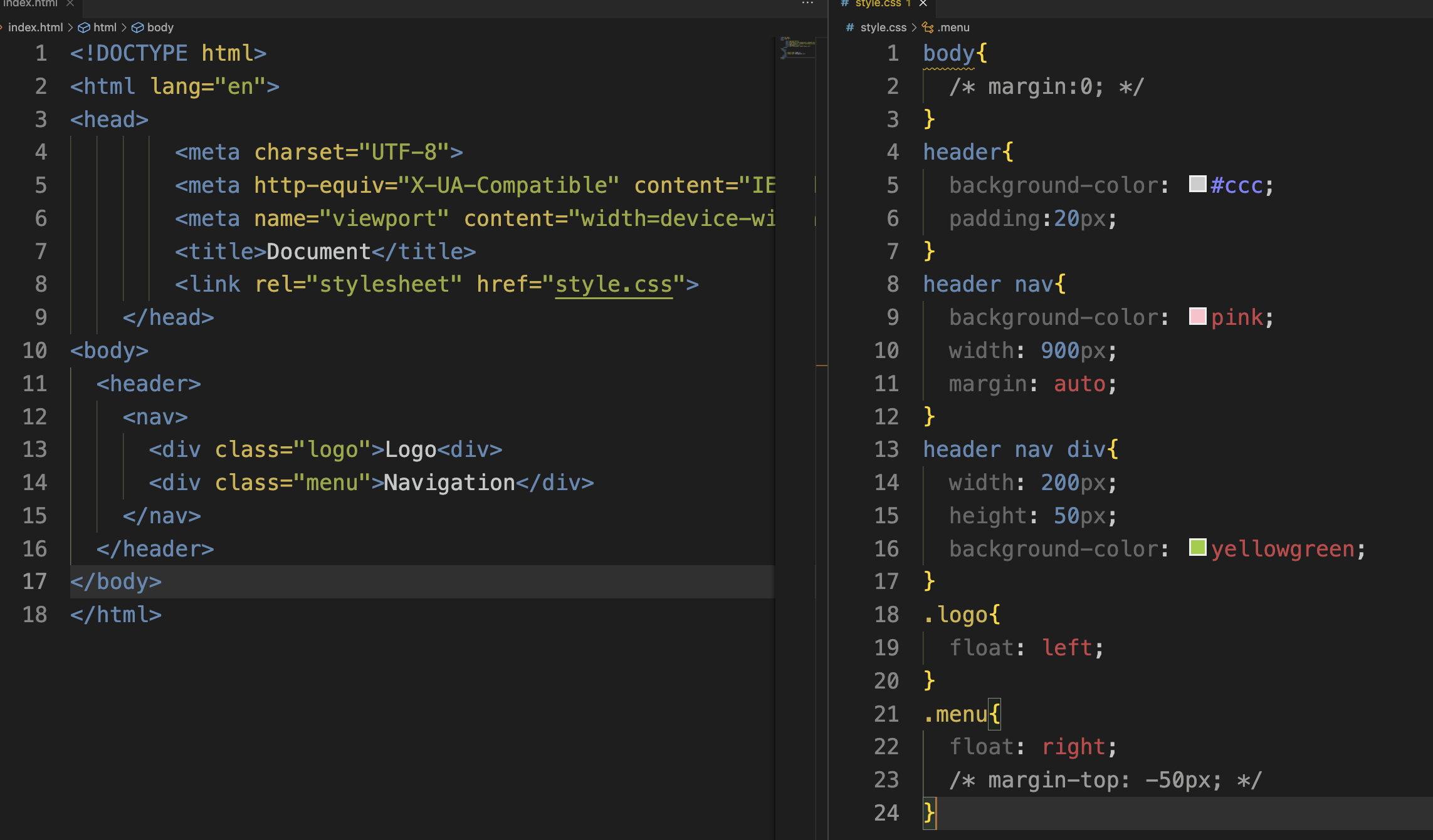 .logo .menu 부분의 float를 저렇게 설정을 해주었는데요,