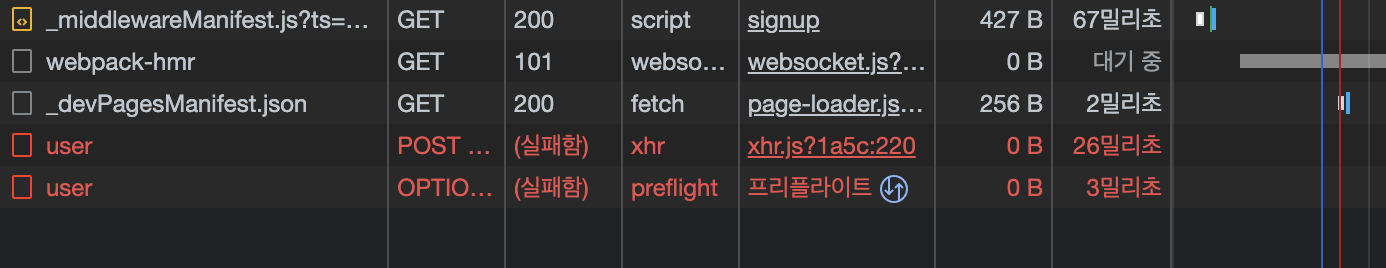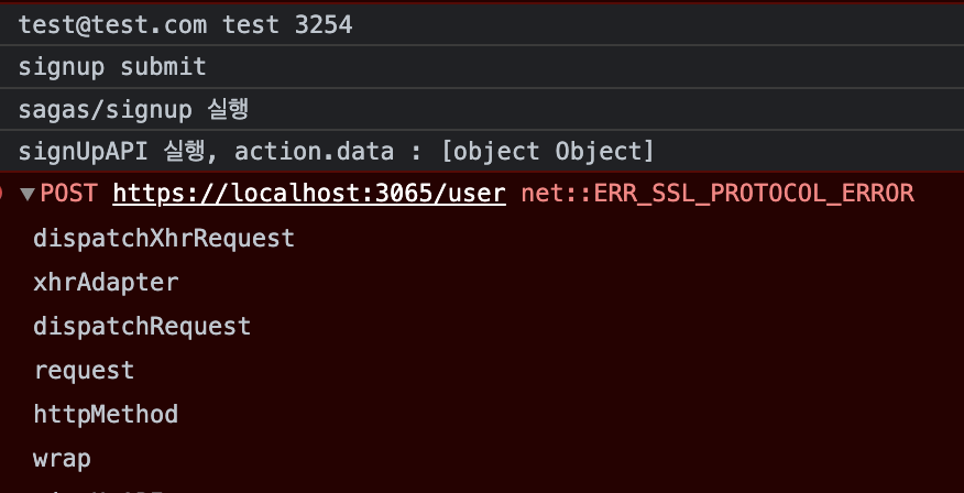 해당 함수도 console.log 찍어보았을 때 front에서 signup submit 이후 sagas/signup 까지 실행되었다고 콘솔에 잘 찍힙니다.