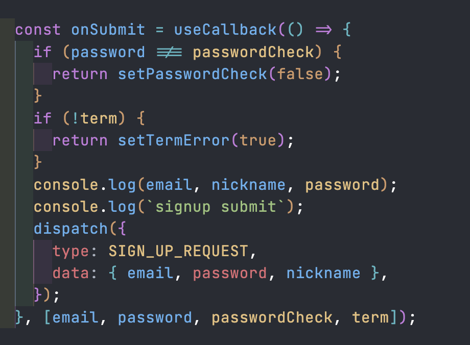 front/pages/signup.js 의 submit 함수입니다.