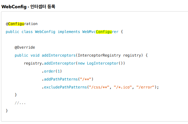 여기서 인터셉터 등록시에 @Configuration이 붙는 데